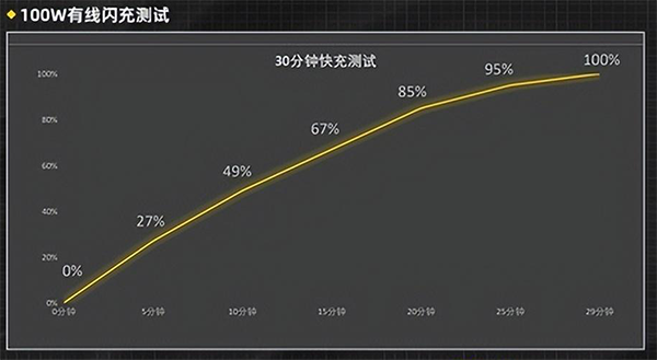 在我們體驗(yàn)過(guò)程中,100W有線(xiàn)快充的充電速度還是非??斓?,15分鐘可以充入67%的電量,29分鐘即可充滿(mǎn)整部手機(jī)。這意味著什么呢?意味著晚上忘了給手機(jī)充電,早上發(fā)現(xiàn)手機(jī)沒(méi)電也用不著懊惱,玩游戲時(shí)也不用擔(dān)心低電量警告,只需要花上幾分鐘,你的手機(jī)就又能電量澎湃,徹底和電量焦慮告別,實(shí)現(xiàn)另一種意義上的“長(zhǎng)續(xù)航”。