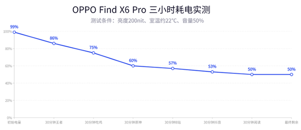 中度測(cè)試耗電方面,充滿電量之后,OPPO Find X6 Pro經(jīng)過(guò)三小時(shí)中度使用實(shí)測(cè),最終剩余50%的電量。這個(gè)耗電情況就日常使用來(lái)說(shuō),基本上可以丟掉續(xù)航焦慮了。