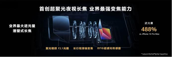 可以說(shuō),華為P60系列在長(zhǎng)焦鏡頭設(shè)計(jì)上進(jìn)行了突破性創(chuàng)新。傳統(tǒng)的潛望式長(zhǎng)焦鏡頭結(jié)構(gòu)光路復(fù)雜,且需要較大的光學(xué)元件來(lái)達(dá)到所需的變焦倍數(shù),導(dǎo)致進(jìn)光量不足。華為P60系列的超聚光夜視長(zhǎng)焦搭載了超聚光長(zhǎng)焦鏡群,采用的聚合鏡膠合技術(shù)能夠最大程度地提高光學(xué)系統(tǒng)的進(jìn)光量,相比iPhone 14 Pro Max提升了488%,實(shí)現(xiàn)了業(yè)內(nèi)最大的進(jìn)光量,甚至能夠媲美主攝。這意味著用戶(hù)在低光環(huán)境下使用長(zhǎng)焦鏡頭,仍然可以拍攝出高質(zhì)量、清晰、低噪點(diǎn)的照片,大大提高了攝影體驗(yàn)。