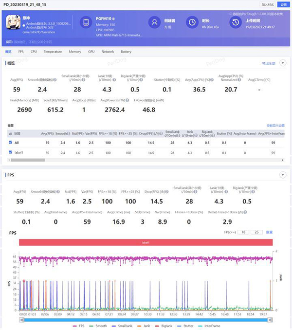 測(cè)試地圖為比較吃性能和渲染的須彌城,測(cè)試時(shí)長(zhǎng)20分鐘,最終幀率表現(xiàn)結(jié)果如下: