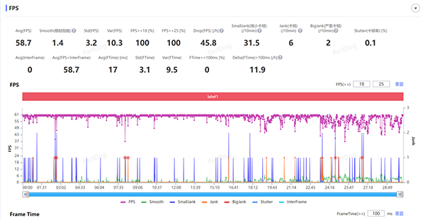 《和平精英》的測試項目中就比較奇怪了,雖然在系統(tǒng)畫質設置里開啟了90幀,但性能測試的時候跑完看數據才發(fā)現(xiàn)是60幀的,以為是自己調整錯誤,又去詳細的比對了一遍,發(fā)現(xiàn)就是哪怕你游戲設置里開了90幀,玩游戲的時候也依然是60幀,不知道是不是系統(tǒng)自動鎖幀率造成的。