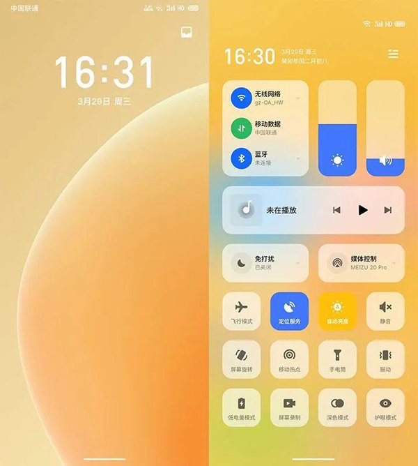 全新的Flyme10將通知欄與控制中心做了區(qū)分,現(xiàn)在下滑后會(huì)直接打開通知中心,漸變的毛玻璃效果配合AliveDesign精致的動(dòng)態(tài)主題,觀感非常美妙。