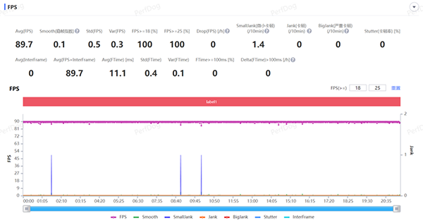 《和平精英》在流暢畫質(zhì)下也可以開啟90幀模式,帶來更流暢的游戲體驗(yàn),經(jīng)過一局游戲的測試,平均幀率為89.7FPS,同樣也是旗艦手機(jī)的水平。