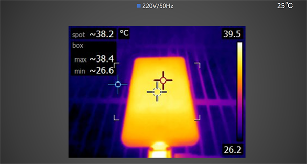 充電5分鐘后,使用熱成像儀拍攝手機背面 ,最高溫度為39.4℃。