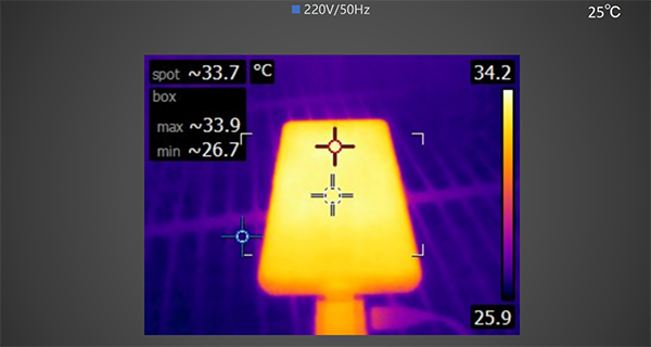 充電30分鐘后,使用熱成像儀拍攝手機正面 ,最高溫度為33.9℃。