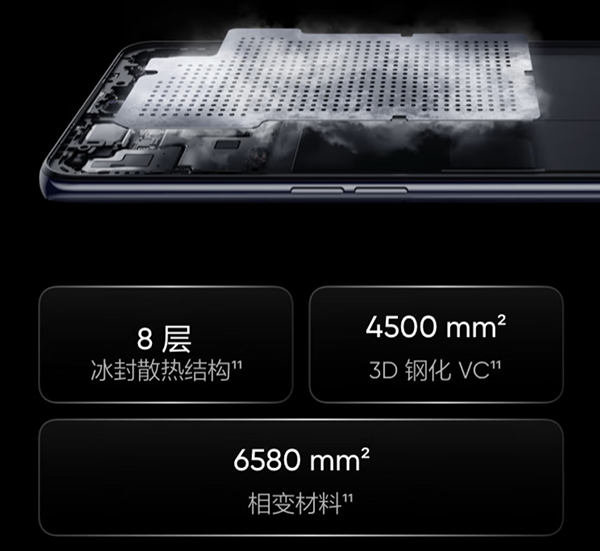 也就是說,為了帶來更好的散熱體驗(yàn),真我GT Neo5 SE帶來了真我GT Neo5同款散熱系統(tǒng)——冰芯雙相變散熱系統(tǒng)Max,6580mm2石墨烯微納腔相變材料,4500mm2的 3D鋼化VC,配合全鏈路智能溫控,長(zhǎng)時(shí)間游戲之后機(jī)身溫度也能得到有效控制。