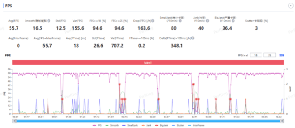 當然,《王者榮耀》《和平精英》這類游戲更不在話下,幾乎滿幀,15分鐘的排位只有兩次1幀的波動,兩次波動都是因為被擊殺了。