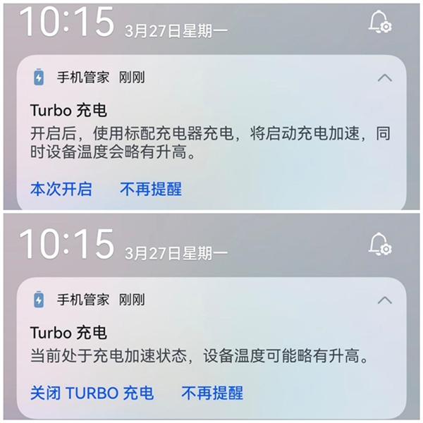 當(dāng)我們插入充電器,系統(tǒng)將會提示我們是否開啟Turbo模式,在開啟該模式下,手機將以高功率進行充電。