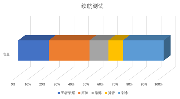 在50%亮度,30%音量,WiFi連接的設(shè)置下,測得的續(xù)航數(shù)據(jù)為1小時(shí)《王者榮耀》耗電18%、1小時(shí)《原神》耗電28%、1小時(shí)微博耗電13%、1小時(shí)抖音耗電10%,從測試結(jié)果來看在高強(qiáng)度的使用下,Z50 Ultra應(yīng)該都可以確保接近6小時(shí)的續(xù)航。