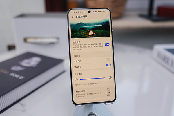 還有一個(gè)是榮耀特色的助眠模式,它可以根據(jù)日落的時(shí)間緩慢下調(diào)屏幕的色溫,讓我在無感知的情況下減少藍(lán)光輻射,減少手機(jī)屏幕對人體褪黑素的抑制,正真做到玩手機(jī)不影響睡眠質(zhì)量。