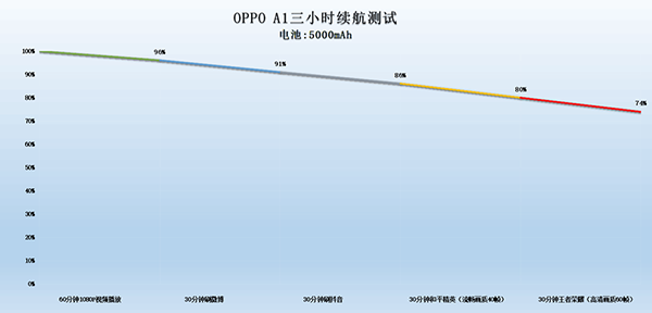 在連續(xù)3小時的使用后,OPPO A1剩余的電量為74%,相信這一個表現(xiàn)應(yīng)對用戶日常的一天使用是沒有什么壓力的。