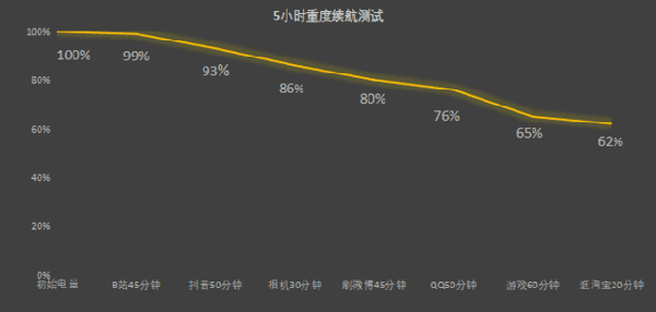經(jīng)過5小時(shí)重度續(xù)航測(cè)試,OPPO A1最終剩余電量在62%,這個(gè)成績(jī)還是相當(dāng)不錯(cuò)的。對(duì)于這樣優(yōu)秀的續(xù)航表現(xiàn),我們分析有以下兩點(diǎn)原因,一方面OPPO A1內(nèi)置了一塊容量更大的5000mAh電池;另一方面,OPPO A1搭載了一顆能效比均衡的驍龍695,因此OPPO A1有著不錯(cuò)的續(xù)航體驗(yàn)。