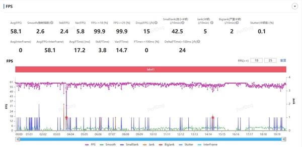 在《原神》這款開放世界的RPG游戲中,三星S23 Ultra也擁有不錯(cuò)的表現(xiàn),在測試前,筆者將游戲的圖像質(zhì)量選到了極高,隨后開啟了最高60的幀率選項(xiàng)。在20分鐘的“跑圖刷怪”的過程中,也未曾出現(xiàn)過卡頓等現(xiàn)象,而且通過PerfDog的數(shù)據(jù)可以看出,三星S23 Ultra的平均幀率為58.1,表現(xiàn)得相對穩(wěn)定,即便是在激烈的戰(zhàn)斗中,也沒有出現(xiàn)非常大的波動(dòng)。