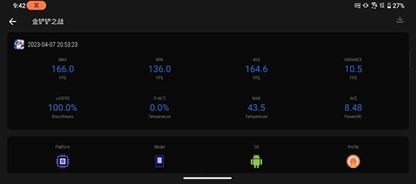 此外,我們還測(cè)試了加上酷冷風(fēng)扇7并開啟X+模式下的成績(jī),在同樣設(shè)置下進(jìn)行了同樣時(shí)長(zhǎng)的測(cè)試,平均幀率達(dá)到了61.1fps,并且在Jank和Big Jank這類高階數(shù)據(jù)上表現(xiàn)更好。而在《金鏟鏟之戰(zhàn)》中ROG 7 Pro可以發(fā)揮屏幕的頂級(jí)實(shí)力,在我們開啟165幀率+高清分辨率+至臻畫面質(zhì)量后,游戲全程平均幀率可以達(dá)到164.6fps,表現(xiàn)令人吃驚。