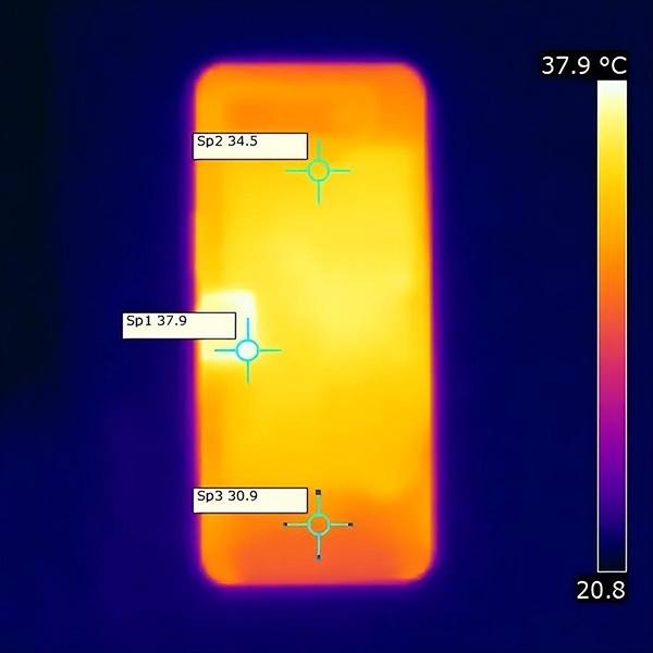 穩(wěn)定的性能表現(xiàn)自然離不開強(qiáng)勁的散熱能力,ROG 7 Pro采用的獨(dú)家填充技術(shù)在主板和RF板間填充了3300mg冷卻材料,其主要成分為氮化硼,導(dǎo)熱性能是空氣的200倍。此外ROG 7 Pro還通過硬件層面的結(jié)構(gòu)優(yōu)化繼續(xù)提升了石墨烯的面積和散熱效率,搭配重構(gòu)VC真空腔均溫板,共同組建了矩陣式液冷散熱架構(gòu)7.0。在我們的實(shí)際測(cè)試中,ROG 7 Pro在室溫20℃的環(huán)境中運(yùn)行最高畫質(zhì)《原神》30分鐘,機(jī)身最高溫度僅為37.9℃,摸上去僅是溫?zé)岬母杏X。