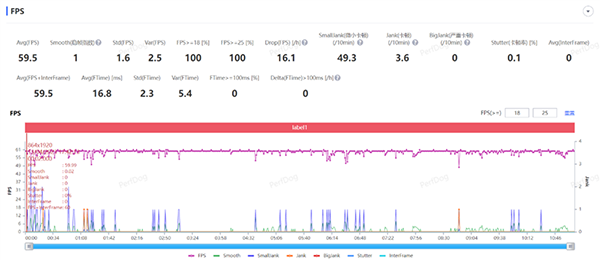 所以,在游戲過程中出現(xiàn)略微卡頓,也算在情理之中,最終的平均幀率維持在了59.5FPS,接近滿幀的成績(jī)也算非常不錯(cuò)了。