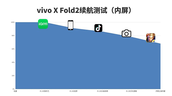 它的續(xù)航表現(xiàn)怎么樣呢?在25±℃室溫和WIFI狀態(tài)下,測試日常使用的情況下vivo X Fold2的續(xù)航表現(xiàn)。