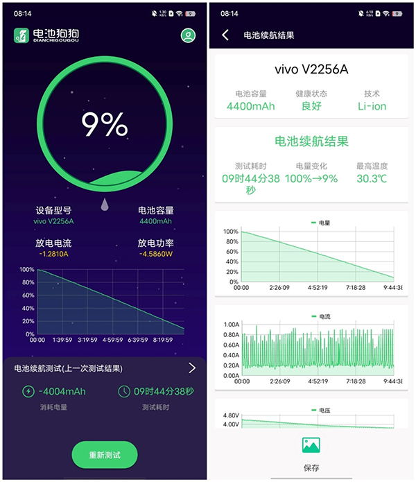 在測試之前,我們將手機(jī)的屏幕亮度調(diào)節(jié)到50%并關(guān)閉自動亮度,使用自適應(yīng)刷新率進(jìn)行測試,經(jīng)過電池狗狗的循環(huán)跑電,最終電量從100%消耗至9%用時9小時44分鐘,經(jīng)過折算至1%,整體的續(xù)航能力大約在10小時40分鐘左右,在縱向折疊屏中脫穎而出。