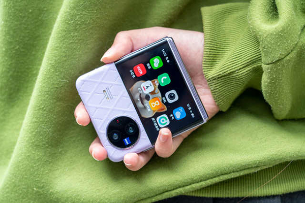 作為主力消費群體,小折疊一直深受女性消費者青睞,因此,機身的設計與顏值的打造也是小折疊屏的關鍵。vivo X Flip采用掌心折疊設計,整機展開約7.75mm厚度,折疊起來是75mmX86mm的小方塊,小巧機身類似一個粉餅盒、零錢包或是卡片相機,可放進任何口袋。