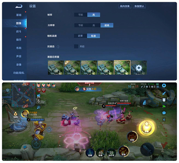 《王者榮耀》選擇的最高畫質(zhì)+最高幀率(60幀)。