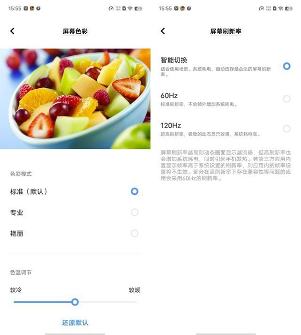 如果是在意刷新率的用戶對于這個LTPO技術(shù)是比較熟悉了,支持這個LTPO技術(shù)的屏幕,在刷新率調(diào)節(jié)上方位會更廣泛一些,那這個vivo Y78+是LTPO屏嗎,答案不是,這個手機雖然支持120Hz自適應(yīng)刷刷新,支持60Hz、120Hz與智能切換三個檔位,但并不是LTPO屏,不過整體的屏幕素質(zhì)也并不差,屏幕顯示內(nèi)容更加真是,色彩還原更加出色。