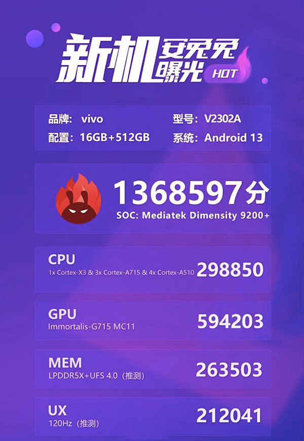 iQOO Neo8 Pro搭載的是天璣9200+處理器了,天璣9200+采用臺(tái)積電4nm工藝,CPU部分由1顆X3超大核、3顆A715大核和4顆A510小核組成,GPU為Immortalis-G715 MC11,性能得到了顯著提升,安兔兔跑分直接干到136萬(wàn),性能強(qiáng)悍,堪稱安卓性能第一,比現(xiàn)在用的安卓機(jī)皇都在用驍龍8gen2足足高出了10萬(wàn)分之多,確實(shí)是挺恐怖的。