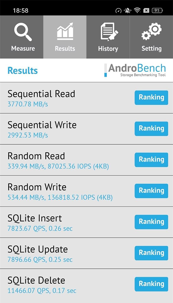 在閃存測試中,OPPO Find X6的順序讀取速率達(dá)到接近3.7GB/s,順序?qū)懭胨俣纫策_(dá)到了了接近3GB/s,符合UFS4.0的存儲(chǔ)標(biāo)準(zhǔn)。