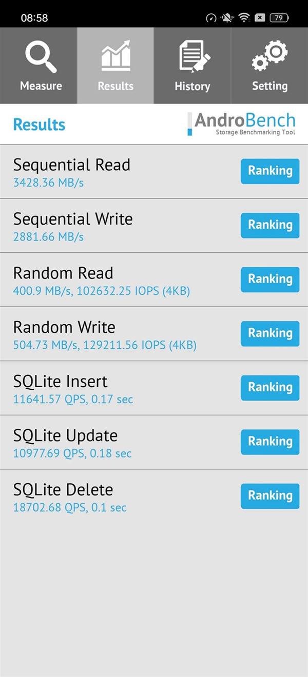在Androbench存儲(chǔ)測(cè)試中,OPPO Find X6 Pro的順序讀取速度達(dá)到3.43GB/s,順序?qū)懭胨俣冗_(dá)到2.88GB/s,速率相比前代分別提升了94.9%、136%,也是UFS4.0閃存所具備的速率。