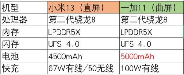 小米13和一加11都是今年上半年發(fā)布的旗艦手機(jī),所以均搭載了高通最新的旗艦處理器第二代驍龍8,并且配有LPDDR5X以及UFS 4.0的內(nèi)存組合,這也是今年旗艦手機(jī)的標(biāo)配。