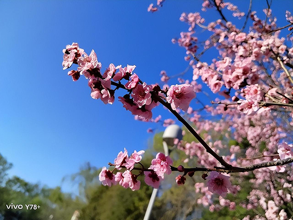 在近距離拍攝方面,花瓣的整體細(xì)節(jié)非常到位,可以清晰的看到花瓣的紋理,后面的景物虛化效果也能很好的突出主體。拍攝當(dāng)天的風(fēng)比較大,樹枝有擺動(dòng),vivo Y78+仍然表現(xiàn)出了優(yōu)秀的抓拍能力,光學(xué)防抖功不可沒。
