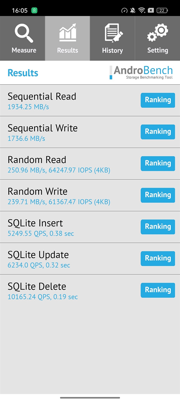 UFS3.1的閃存,在Androbench測試中,順序讀取速度達到1.93GB/s,順序寫入速度達到1.74GB/s,相比UFS2.2分別領先了93%、85%。