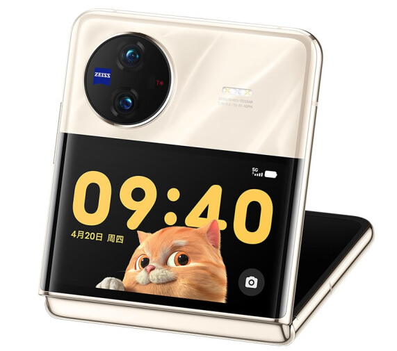vivo X Flip手機(jī)內(nèi)屏搭載了京東方6.74英寸OLED柔性折疊屏,采用水滴折疊彎折解決方案,彎折展開后屏幕仍平整。