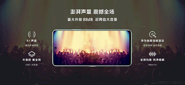 在音質(zhì)體驗上,華為暢享60 Pro搭載了Histen 8.1音頻解決方案,使得低音更渾厚,中音更清澈,得益于模擬了9.1聲道天空環(huán)繞音效,接入耳機后,用戶更能沉浸聽歌觀影。同時,華為暢享60 Pro系列引領(lǐng)了大音量的聆聽潮流,峰值音量達到88 dB,聚會外放音樂時,大音量帶來的聽感更加震撼。