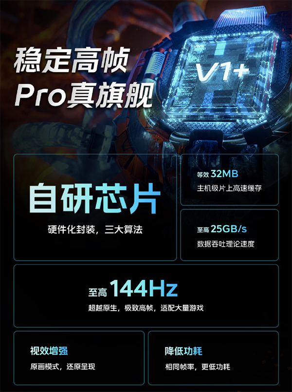 iQOO Neo8全系搭載自研芯片V1+,該芯片硬件化封裝,支持三個算法,等效32MB主機級片上高速緩存,最高數(shù)據(jù)吞吐理論速度可達25GB/s,最高刷新率達到144Hz,適配多款游戲,可顯著提升視效和降低功耗。