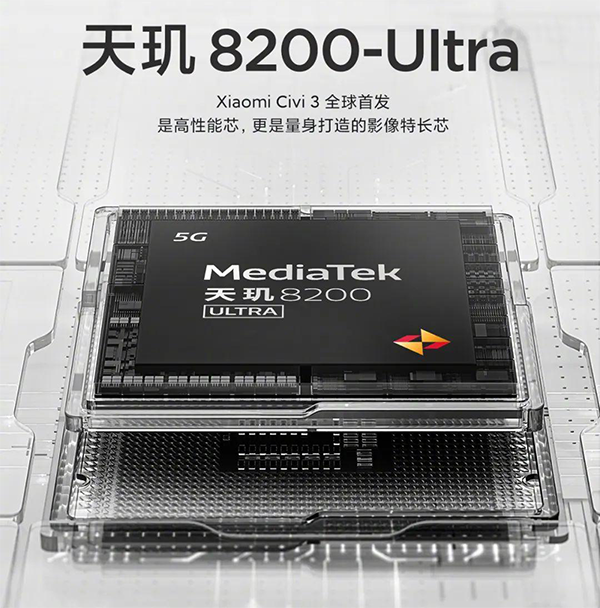 這個天璣8200-Ultra芯片天璣8200的改良款,采用臺積電4nm工藝,天璣8200-Ultra也是小米civi系列首次搭載聯(lián)發(fā)科天璣的芯片,此前發(fā)布的civi、civi1S、civi2機型分別搭載的驍龍778G、驍龍778G Plus和驍龍7 Gen1芯片。