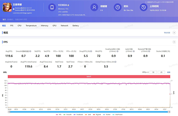 從測(cè)試結(jié)果來(lái)看,iQOO Neo8 Pro的表現(xiàn)和我們預(yù)想中的基本一致。在《王者榮耀》的測(cè)試中,iQOO Neo8 Pro基本是可以一直處于滿幀狀態(tài)下運(yùn)行,當(dāng)然這對(duì)于搭載旗艦級(jí)移動(dòng)平臺(tái)的機(jī)型來(lái)說(shuō),并沒(méi)有什么壓力。