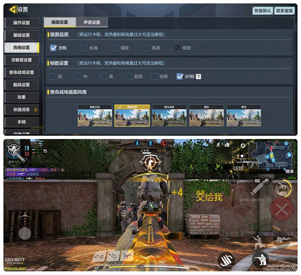 再來看看《使命召喚手游》,流暢畫質(zhì)+90幀,游戲模式為10v10據(jù)點(diǎn)爭奪。