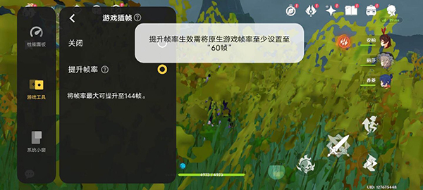 以《原神》游戲?yàn)槔?,這款游戲的最高幀率為60幀,而開啟「提升幀率」后,通過這顆V1+插幀,即可實(shí)現(xiàn)144幀的高刷游戲體驗(yàn)。