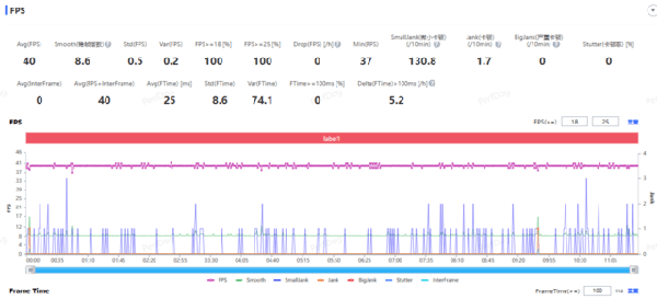在《和平精英》的“超高幀率-均衡”畫質(zhì)下,平均幀率達到了40fps,并保持了非常穩(wěn)定的游戲全程幀率。