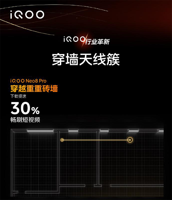 盡管目前階段國(guó)內(nèi)還沒有Wi-Fi 7的頻段,不過這次iQOO Neo8和iQOO11全系一樣都支持WiFi7,未雨綢繆可還行?值得一提的是,這次全系還首發(fā)了一個(gè)雙通道天線簇,穿墻能力提升,提升弱信號(hào)的強(qiáng)度。