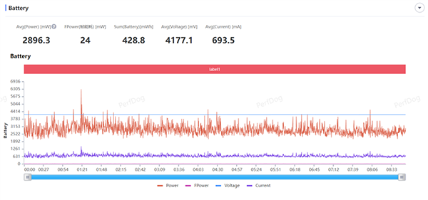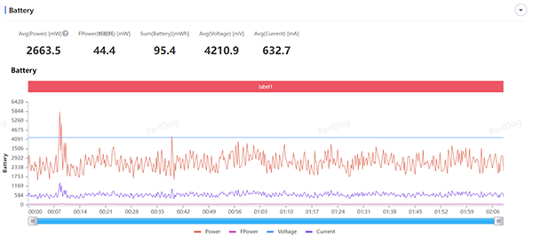 《QQ飛車》手游的負(fù)載并不算高,功耗只有2.7W。