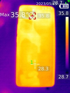 背面發(fā)熱最高的地方,就是芯片所在的位置僅有35.8攝氏度,下半部分的握持區(qū)域也僅有28.3攝氏度,手機(jī)表面說幾乎無感。