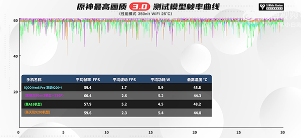 從小白測評的數(shù)據(jù)來看,天璣9200+在原神中的幀率機波動表現(xiàn)還是挺不錯的,和驍龍8 Gen2的表現(xiàn)可以說不相上下,不過在平均功耗上面,天璣9200+就露出了馬腳,其能耗比驍龍8 Gen2高了約13%,比天璣9200高了約9%,還是熟悉的能耗換性能套路。