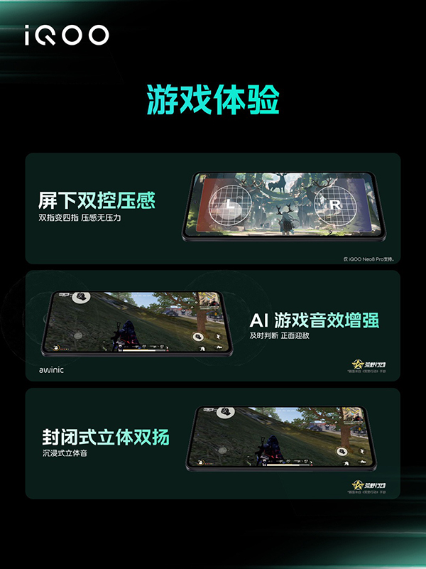 也就是說,這次的iQOO Neo8標準版取消了屏下雙控壓感,iQOO已經連續(xù)多季都是KPL的比賽用機品牌,而此次iQOO Neo8系列也毫不意外通過了KPL比賽用機測試認證,屏幕雙控壓感(Pro版本才具有)和對稱式雙X軸線性馬達,帶來更沉浸的游戲體驗