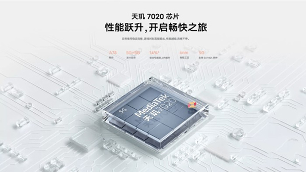 天璣7020屬于中低端入門型處理器,整體的性能比較一般,基本上只有千元機才會搭載。不過功耗比還是比較出色的,可以為手機提供不錯的續(xù)航能力,對于手機性能沒有什么要求的用戶來說,是一個不錯的選擇。