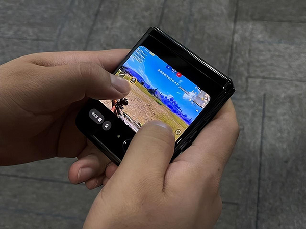 首先,我們先來體驗(yàn)下熱門手游《王者榮耀》,外屏將其添加至應(yīng)用欄中便可快速開啟,此時(shí)原本較為“方正”的外屏?xí)粘雠c攝像模組同高的黑色區(qū)域,保證兩顆鏡頭不會(huì)干擾游戲視野;長(zhǎng)方形的畫面類似直板機(jī)布局,避免異形屏幕導(dǎo)致的別扭觀感。