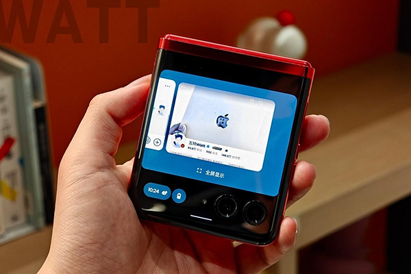在如此輕巧的機(jī)身上,摩托羅拉razr 40 Ultra擁有小折疊手機(jī)中最大的3.6英寸外屏,面積基本占滿半個(gè)機(jī)身。甚至為了更進(jìn)一步提升屏幕使用面積,這塊外屏還極為罕見的采用三挖孔設(shè)計(jì),外屏將兩顆攝像頭和閃光燈都包進(jìn)來了嗎,不浪費(fèi)每一點(diǎn)面積。