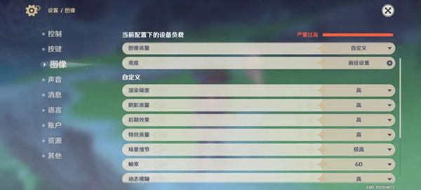 畫面設(shè)置為渲染精度、陰影質(zhì)量、后期效果、特效質(zhì)量、動態(tài)模糊高,場景細(xì)節(jié)極高,幀率60。