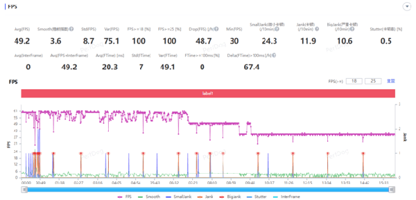 在跑圖測試中,我們選擇了空間站主控艙段場景,進行15分鐘跑圖測試。小米13 Ultra在開始測試后的6分鐘時間里一直保持了60幀模式,但是幀率曲線抖動明顯,隨后降至了50幀模式,持續(xù)了幾分鐘,開始測試9分鐘后,小米13 Ultra轉(zhuǎn)入40幀模式,直到測試結(jié)束。15分鐘測試結(jié)束后,機身后背平均溫度46.7攝氏度。