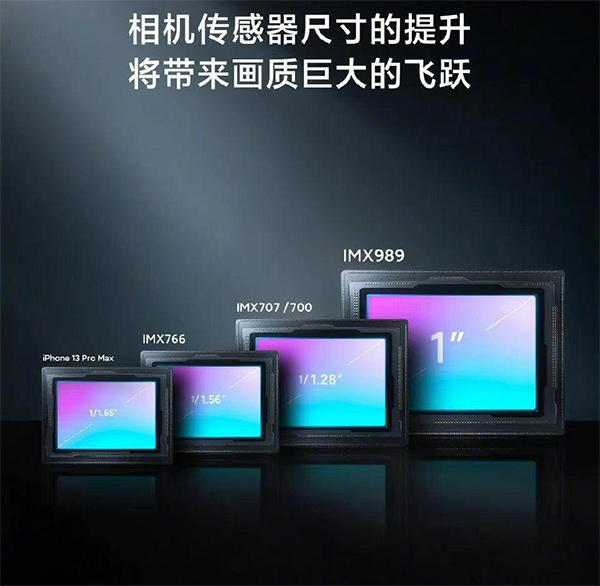 上圖就是1英寸IMX989傳感器大小對比圖